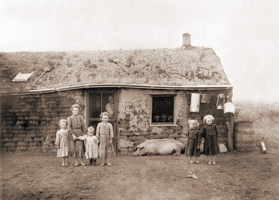Settler / squatters, family in dugout, germans from russia heritage collection.